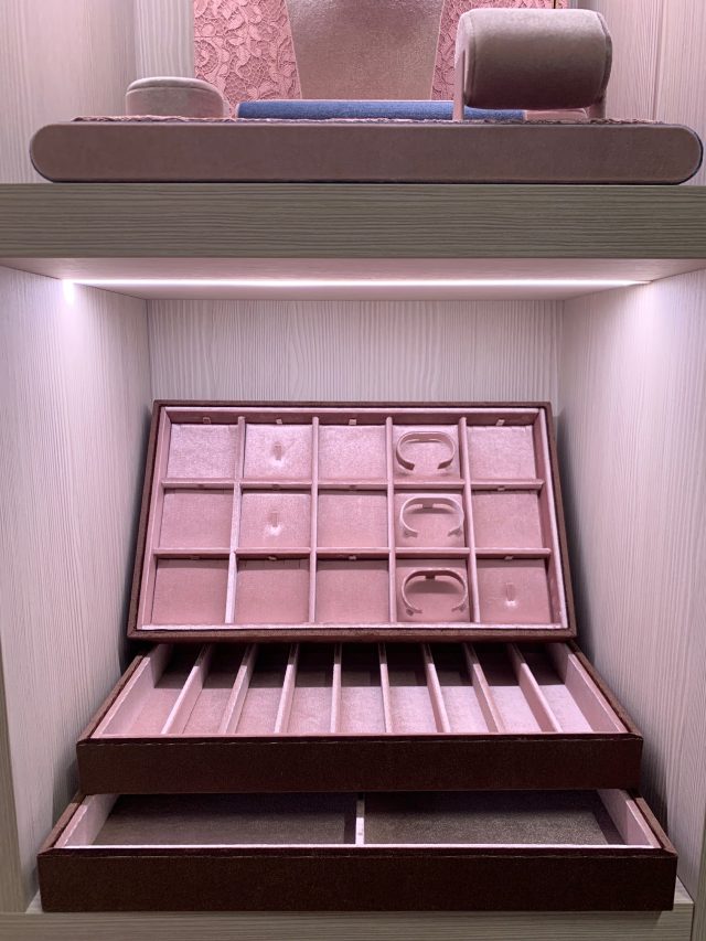 Vassoio in legno naturale o legno foderato in eco-pelle o tessuto flock.